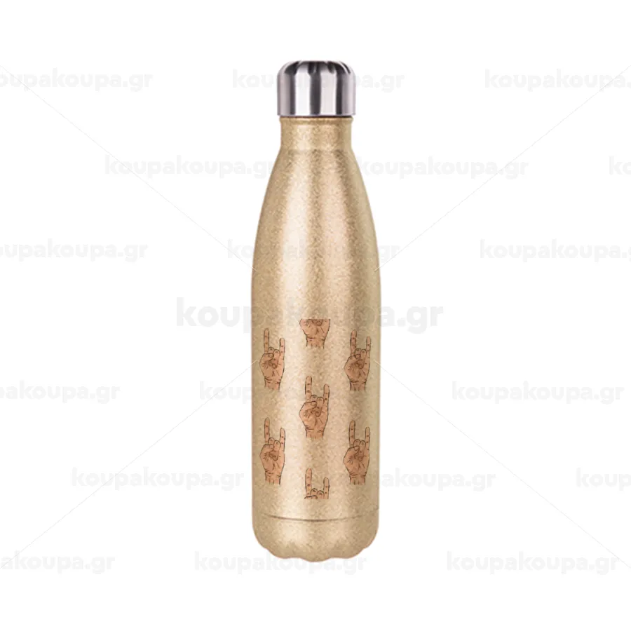 Rock hands, Μεταλλικό παγούρι θερμός Glitter χρυσό (Stainless steel), διπλού τοιχώματος, 500ml