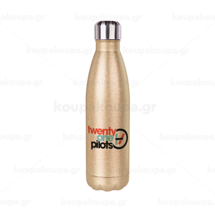 Twenty one pilots, Μεταλλικό παγούρι θερμός Glitter χρυσό (Stainless steel), διπλού τοιχώματος, 500ml