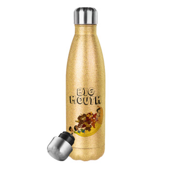 Big mouth, Μεταλλικό παγούρι θερμός Glitter χρυσό (Stainless steel), διπλού τοιχώματος, 500ml