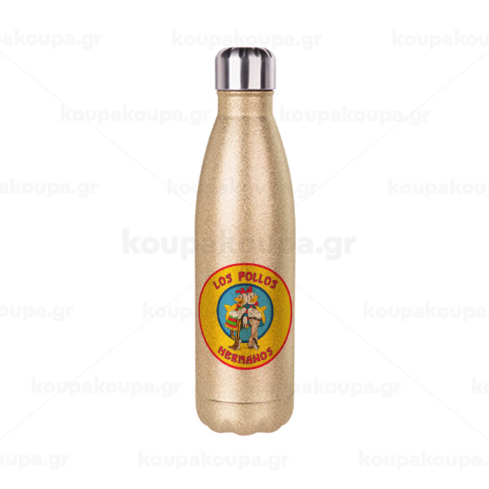 Los Pollos Hermanos, Μεταλλικό παγούρι θερμός Glitter χρυσό (Stainless steel), διπλού τοιχώματος, 500ml