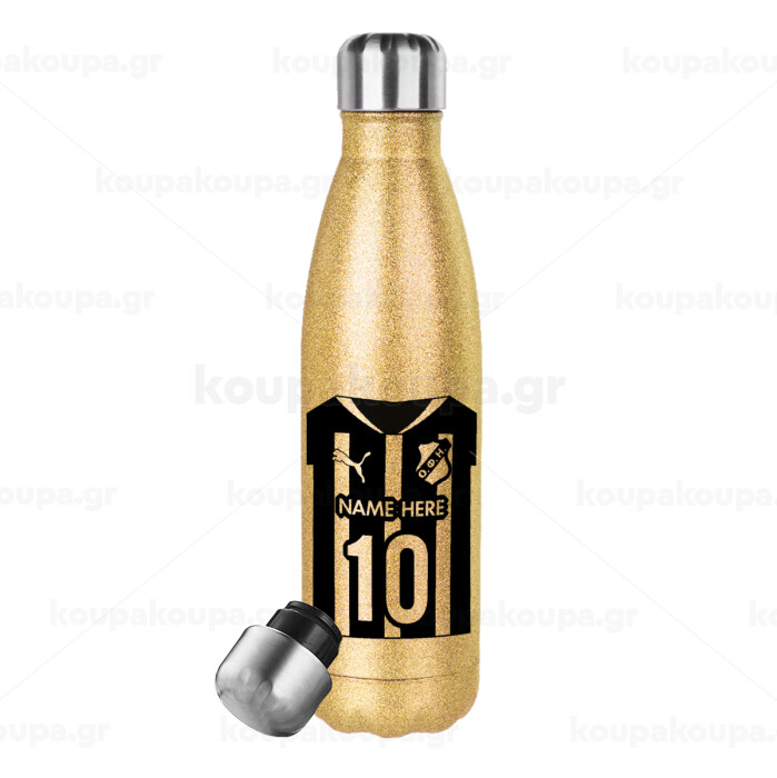 ΟΦΗ εμφάνιση, Μεταλλικό παγούρι θερμός Glitter χρυσό (Stainless steel), διπλού τοιχώματος, 500ml