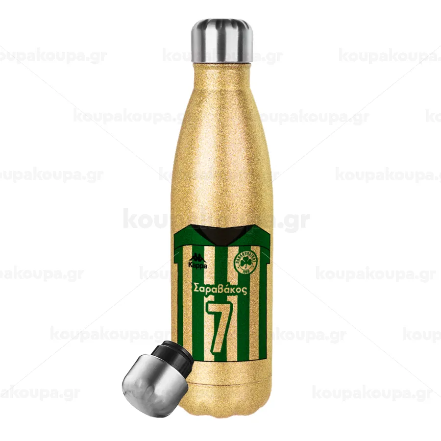 Παναθηναϊκός εμφάνιση, Μεταλλικό παγούρι θερμός Glitter χρυσό (Stainless steel), διπλού τοιχώματος, 500ml