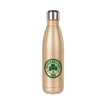 ΠΑΟ Παναθηναϊκός, Μεταλλικό παγούρι θερμός Glitter χρυσό (Stainless steel), διπλού τοιχώματος, 500ml