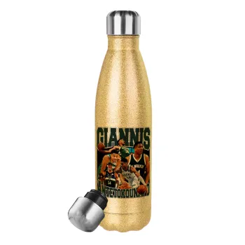 Giannis Antetokounmpo, Μεταλλικό παγούρι θερμός Glitter χρυσό (Stainless steel), διπλού τοιχώματος, 500ml
