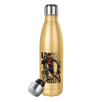 Lamine Yamal (Λαμίν Γιαμάλ), Μεταλλικό παγούρι θερμός Glitter χρυσό (Stainless steel), διπλού τοιχώματος, 500ml