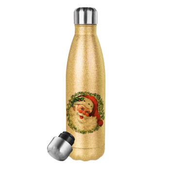 Santa Claus, Μεταλλικό παγούρι θερμός Glitter χρυσό (Stainless steel), διπλού τοιχώματος, 500ml