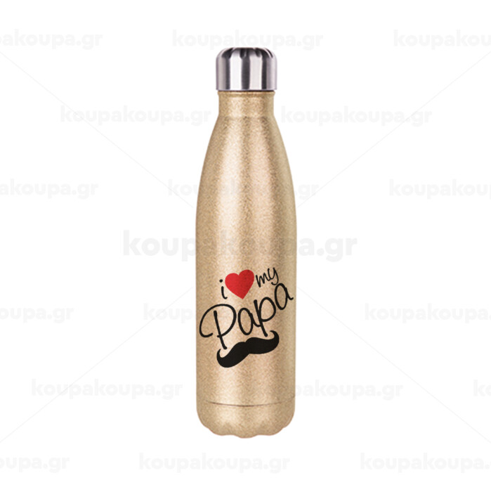 I Love my papa, Μεταλλικό παγούρι θερμός Glitter χρυσό (Stainless steel), διπλού τοιχώματος, 500ml