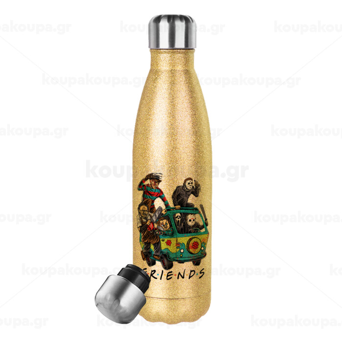 Halloween Friends Scooby Doo, Μεταλλικό παγούρι θερμός Glitter χρυσό (Stainless steel), διπλού τοιχώματος, 500ml