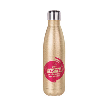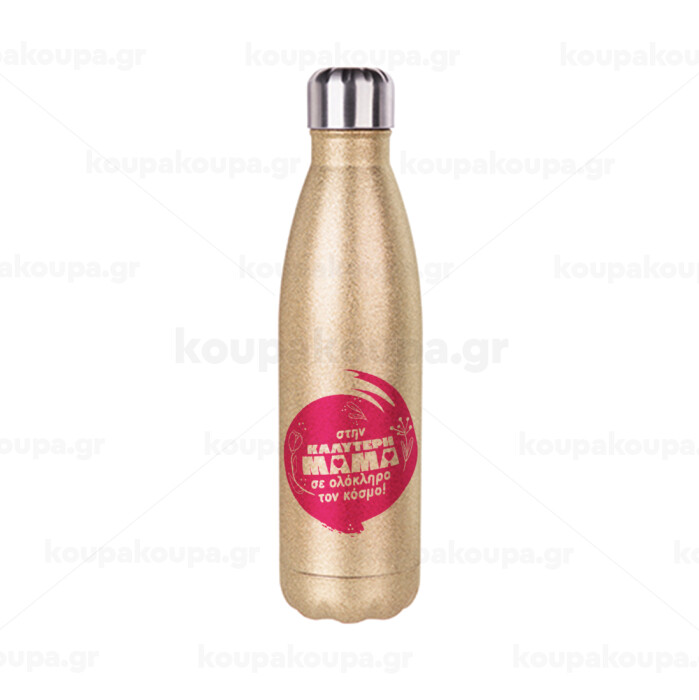 Στην καλύτερη μαμά του κόσμου!, Μεταλλικό παγούρι θερμός Glitter χρυσό (Stainless steel), διπλού τοιχώματος, 500ml