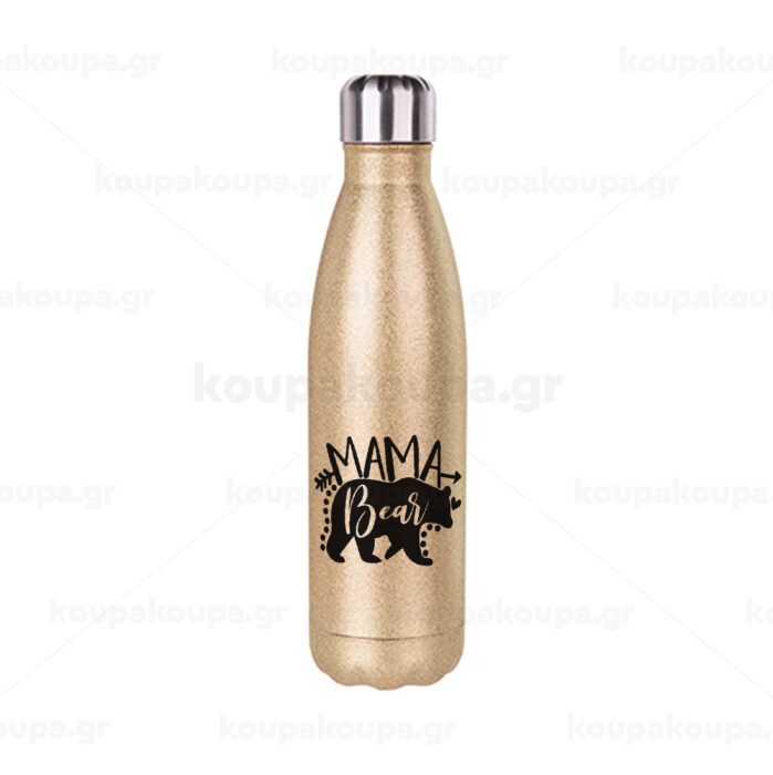 Mama Bear, Μεταλλικό παγούρι θερμός Glitter χρυσό (Stainless steel), διπλού τοιχώματος, 500ml