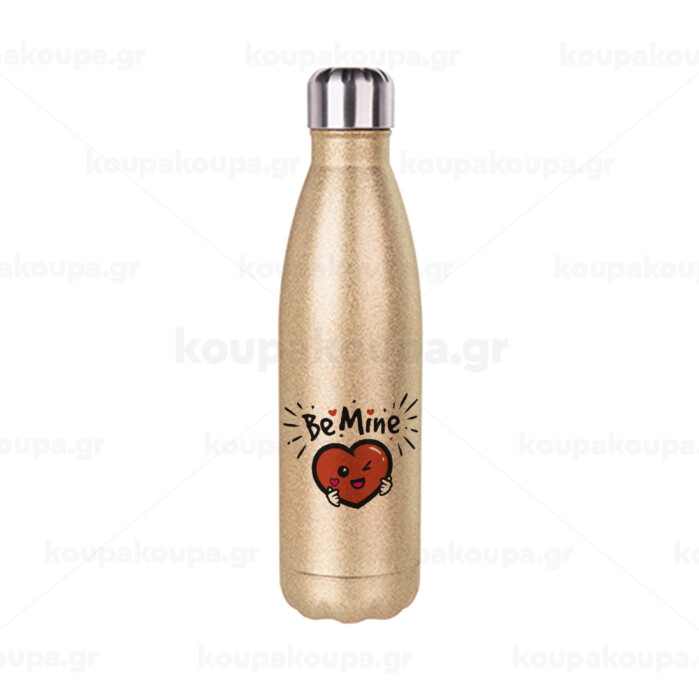 Be mine!, Μεταλλικό παγούρι θερμός Glitter χρυσό (Stainless steel), διπλού τοιχώματος, 500ml