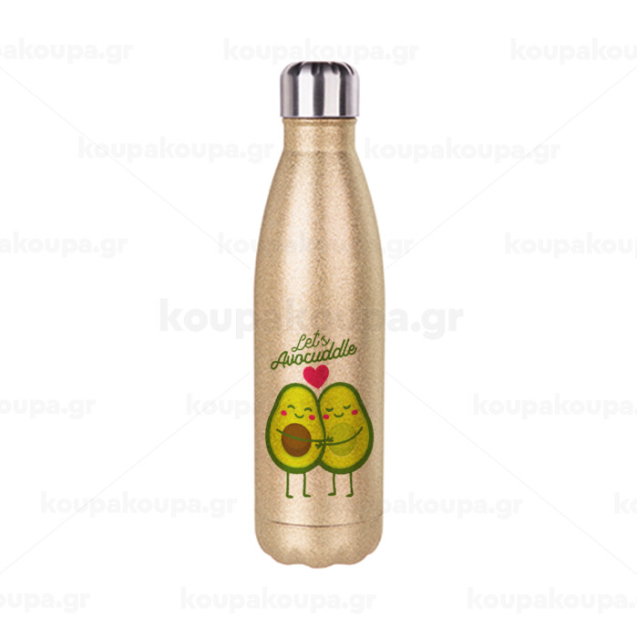 Let's avocuddle, Μεταλλικό παγούρι θερμός Glitter χρυσό (Stainless steel), διπλού τοιχώματος, 500ml