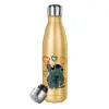 Lilo & Stitch painting, Μεταλλικό παγούρι θερμός Glitter χρυσό (Stainless steel), διπλού τοιχώματος, 500ml