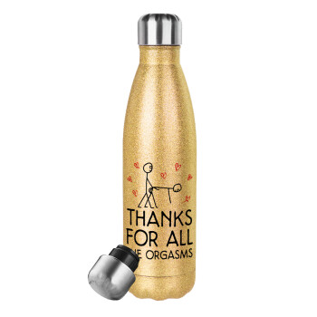 Thanks for all the orgasms, Μεταλλικό παγούρι θερμός Glitter χρυσό (Stainless steel), διπλού τοιχώματος, 500ml