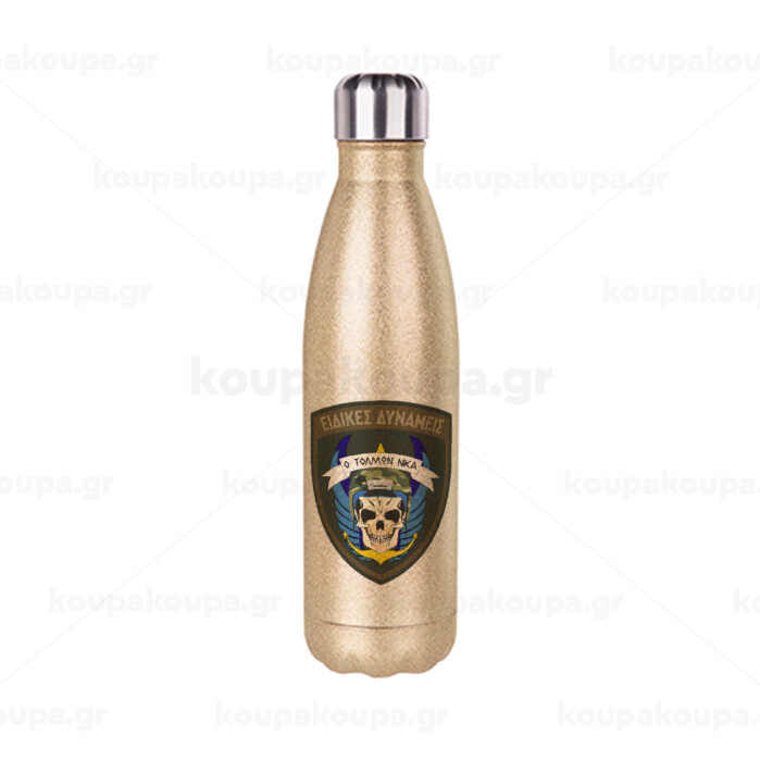 Ειδικές δυνάμεις, Μεταλλικό παγούρι θερμός Glitter χρυσό (Stainless steel), διπλού τοιχώματος, 500ml