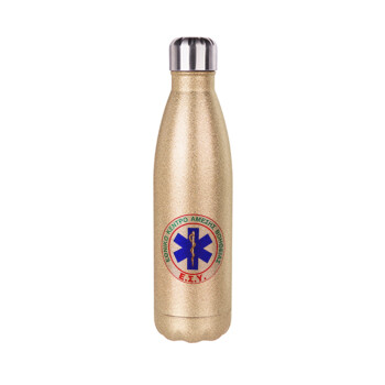 ΕΚΑΒ, Μεταλλικό παγούρι θερμός Glitter χρυσό (Stainless steel), διπλού τοιχώματος, 500ml