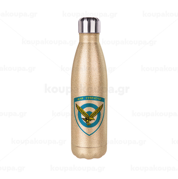 Ελληνική Πολεμική Αεροπορία, Μεταλλικό παγούρι θερμός Glitter χρυσό (Stainless steel), διπλού τοιχώματος, 500ml