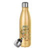 Χάρτης Ελλάδος, Μεταλλικό παγούρι θερμός Glitter χρυσό (Stainless steel), διπλού τοιχώματος, 500ml