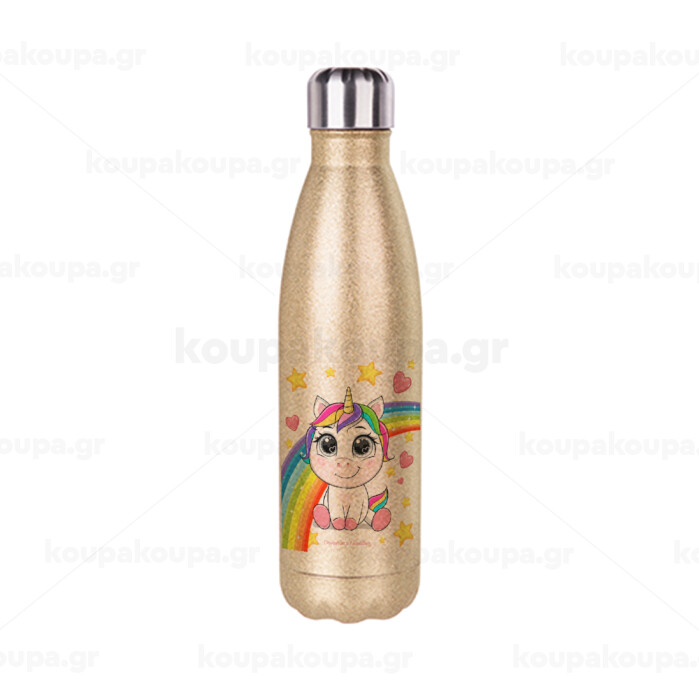 Unicorn baby με όνομα, Μεταλλικό παγούρι θερμός Glitter χρυσό (Stainless steel), διπλού τοιχώματος, 500ml