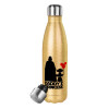 Daddy's princess, Μεταλλικό παγούρι θερμός Glitter χρυσό (Stainless steel), διπλού τοιχώματος, 500ml