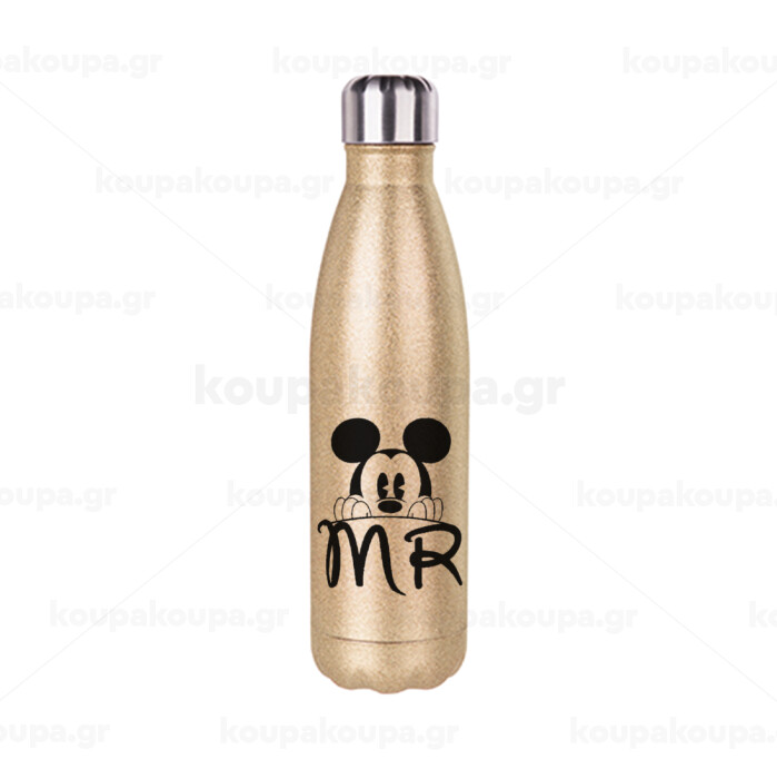 Mikey Mr, Μεταλλικό παγούρι θερμός Glitter χρυσό (Stainless steel), διπλού τοιχώματος, 500ml