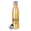 MILF, Μεταλλικό παγούρι θερμός Glitter χρυσό (Stainless steel), διπλού τοιχώματος, 500ml