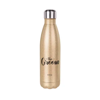Groom & Bride (Groom), Μεταλλικό παγούρι θερμός Glitter χρυσό (Stainless steel), διπλού τοιχώματος, 500ml