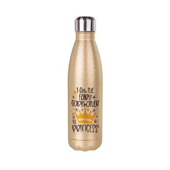 I am the fairy Godmother of the Princess, Μεταλλικό παγούρι θερμός Glitter χρυσό (Stainless steel), διπλού τοιχώματος, 500ml