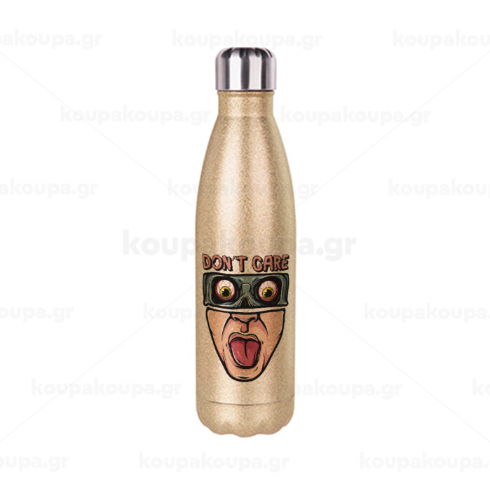 Don't Care, Μεταλλικό παγούρι θερμός Glitter χρυσό (Stainless steel), διπλού τοιχώματος, 500ml