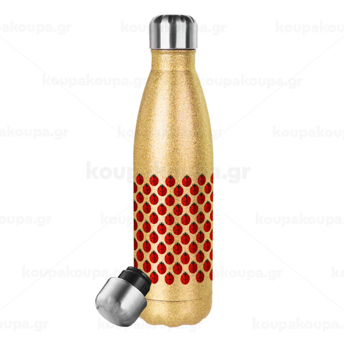 Πασχαλίτσα, Μεταλλικό παγούρι θερμός Glitter χρυσό (Stainless steel), διπλού τοιχώματος, 500ml
