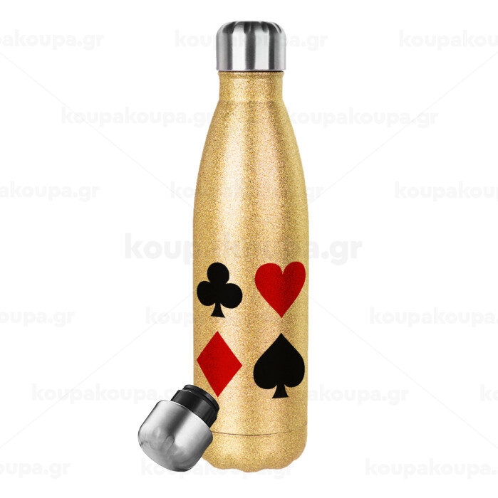 Τραπουλόχαρτα, Μεταλλικό παγούρι θερμός Glitter χρυσό (Stainless steel), διπλού τοιχώματος, 500ml