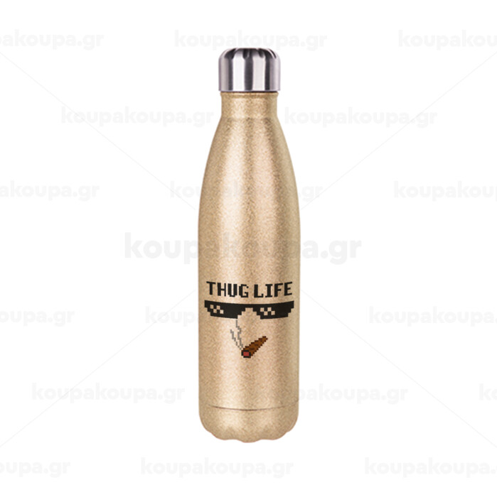 thug life, Μεταλλικό παγούρι θερμός Glitter χρυσό (Stainless steel), διπλού τοιχώματος, 500ml