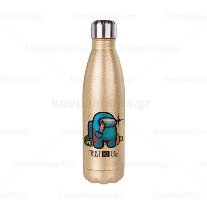 Among Trust no one, Μεταλλικό παγούρι θερμός Glitter χρυσό (Stainless steel), διπλού τοιχώματος, 500ml
