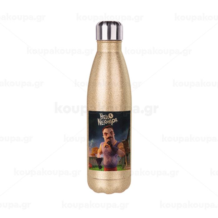 Hello Neighbor, Μεταλλικό παγούρι θερμός Glitter χρυσό (Stainless steel), διπλού τοιχώματος, 500ml