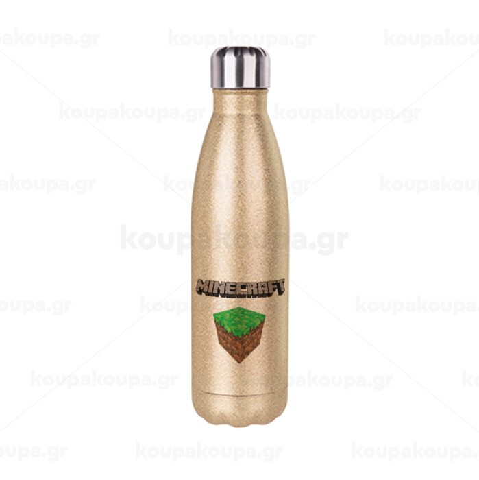 Minecraft dirt, Μεταλλικό παγούρι θερμός Glitter χρυσό (Stainless steel), διπλού τοιχώματος, 500ml