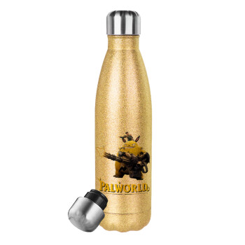 Palworld, Μεταλλικό παγούρι θερμός Glitter χρυσό (Stainless steel), διπλού τοιχώματος, 500ml