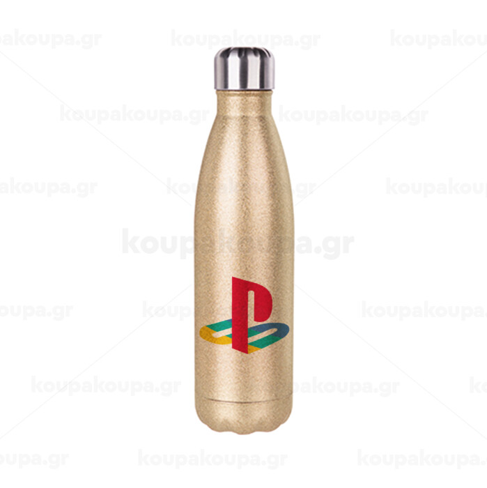 Playstation, Μεταλλικό παγούρι θερμός Glitter χρυσό (Stainless steel), διπλού τοιχώματος, 500ml