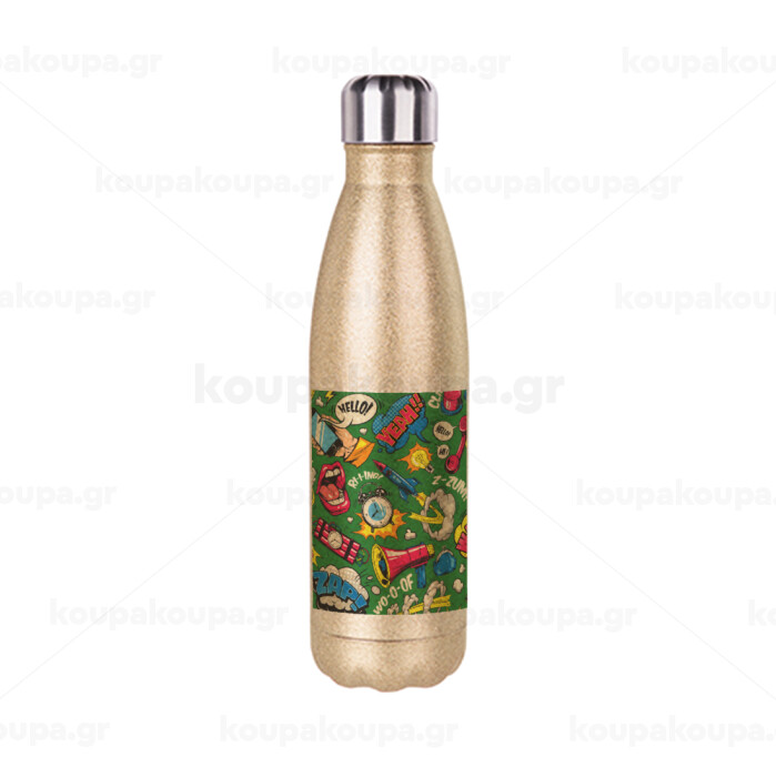Pop art colorful seamless, Μεταλλικό παγούρι θερμός Glitter χρυσό (Stainless steel), διπλού τοιχώματος, 500ml