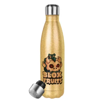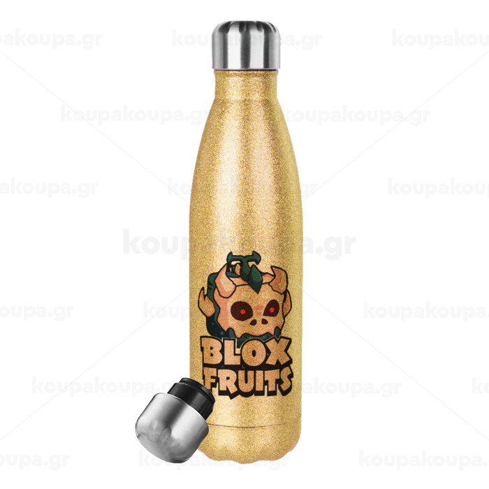 Roblox Blox Fruits, Μεταλλικό παγούρι θερμός Glitter χρυσό (Stainless steel), διπλού τοιχώματος, 500ml