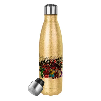 Roblox Forsaken, Μεταλλικό παγούρι θερμός Glitter χρυσό (Stainless steel), διπλού τοιχώματος, 500ml