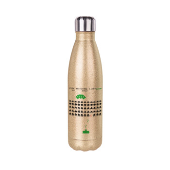 Space invaders, Μεταλλικό παγούρι θερμός Glitter χρυσό (Stainless steel), διπλού τοιχώματος, 500ml