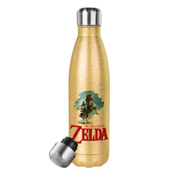 Zelda, Μεταλλικό παγούρι θερμός Glitter χρυσό (Stainless steel), διπλού τοιχώματος, 500ml