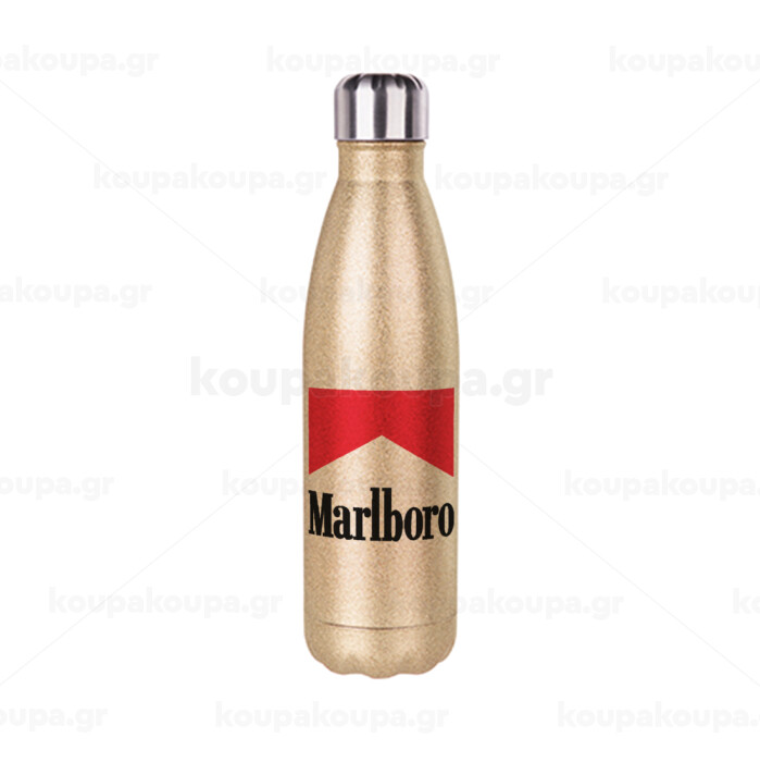 Marlboro, Μεταλλικό παγούρι θερμός Glitter χρυσό (Stainless steel), διπλού τοιχώματος, 500ml