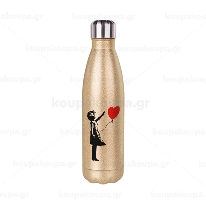 Banksy (Hope), Μεταλλικό παγούρι θερμός Glitter χρυσό (Stainless steel), διπλού τοιχώματος, 500ml