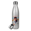 Ευχαριστώ για όλα γιατρέ, Μεταλλικό παγούρι θερμός Glitter Aσημένιο (Stainless steel), διπλού τοιχώματος, 500ml