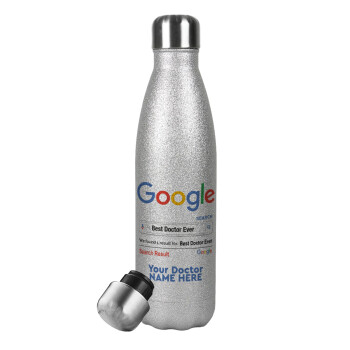 Searching for Best Doctor Ever..., Μεταλλικό παγούρι θερμός Glitter Aσημένιο (Stainless steel), διπλού τοιχώματος, 500ml