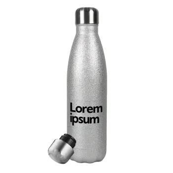 Lorem ipsum, Μεταλλικό παγούρι θερμός Glitter Aσημένιο (Stainless steel), διπλού τοιχώματος, 500ml