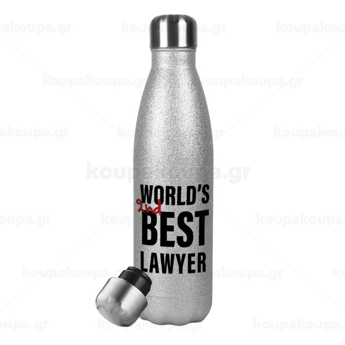 2nd, World Best Lawyer , Μεταλλικό παγούρι θερμός Glitter Aσημένιο (Stainless steel), διπλού τοιχώματος, 500ml