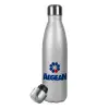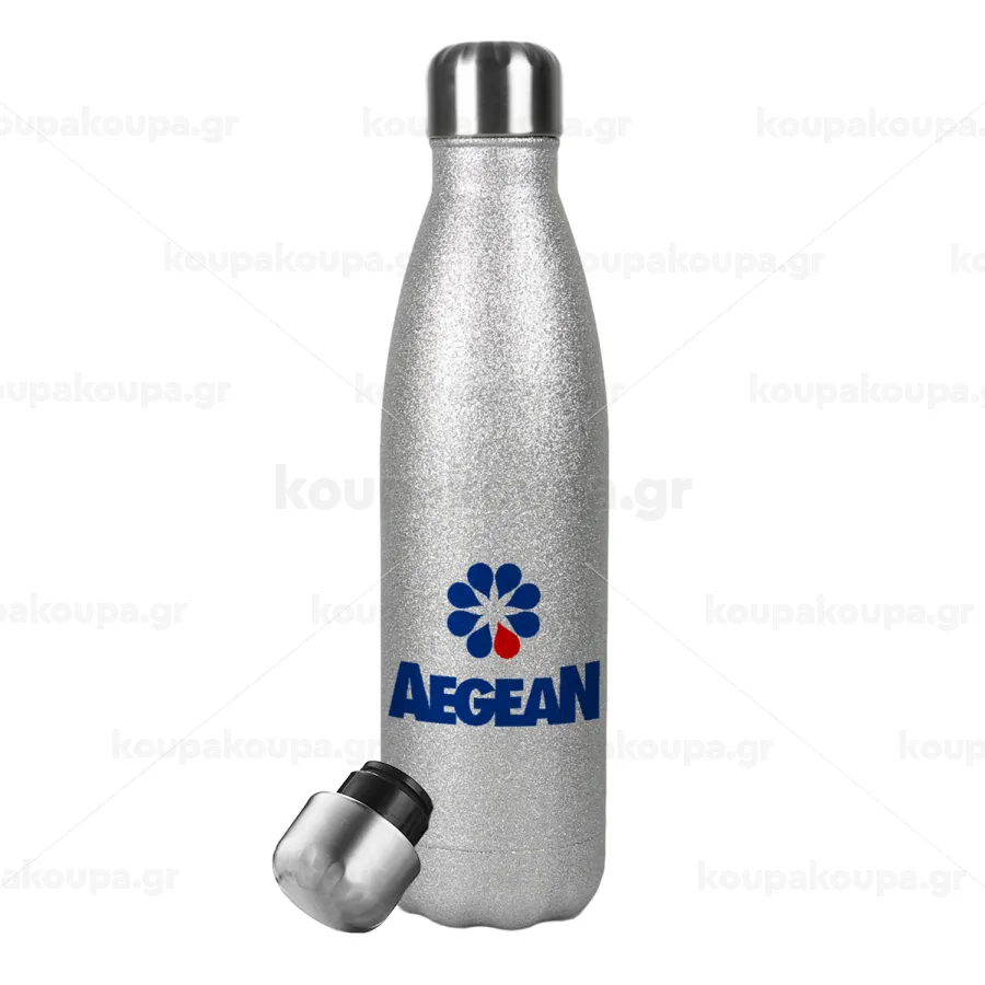 Πρατήριο καυσίμων AEGEAN, Μεταλλικό παγούρι θερμός Glitter Aσημένιο (Stainless steel), διπλού τοιχώματος, 500ml