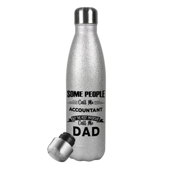 Some people call me accountant, Μεταλλικό παγούρι θερμός Glitter Aσημένιο (Stainless steel), διπλού τοιχώματος, 500ml